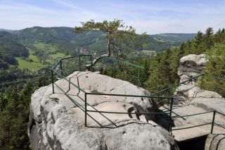 Skály ve kterých lze nalézt skalní bludiště Kalich a Chléviště, a které nabízejí několik atraktivních výhledů na celé maloskalské údolí.