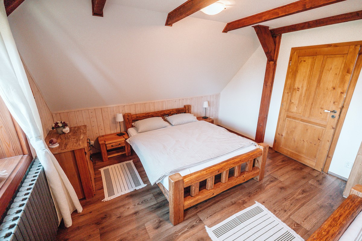 - v patře jsou tři ložnice: dvě dvoulůžkové a jedna čtyřlůžková, záchod