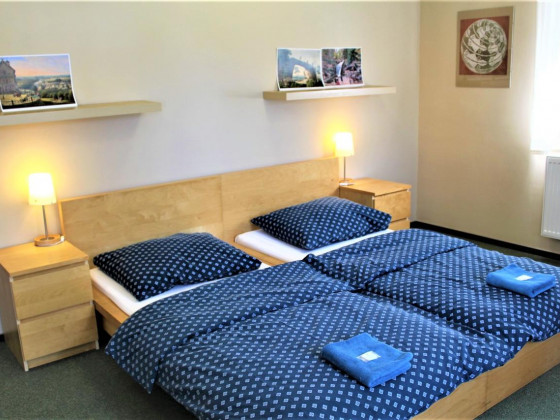 Nabízíme ubytování ve dvoulůžkových apartmánech s kuchyňským koutem a vlastním soc. zařízením, které se nacházejí v podkroví. K dispozici jsou 2 dvoulůžkové apartmány, 1 třílůžkový apartmán a 1 dvoulůžkový apartmán s možností 2 přistýlek (rozkládací pohovka).