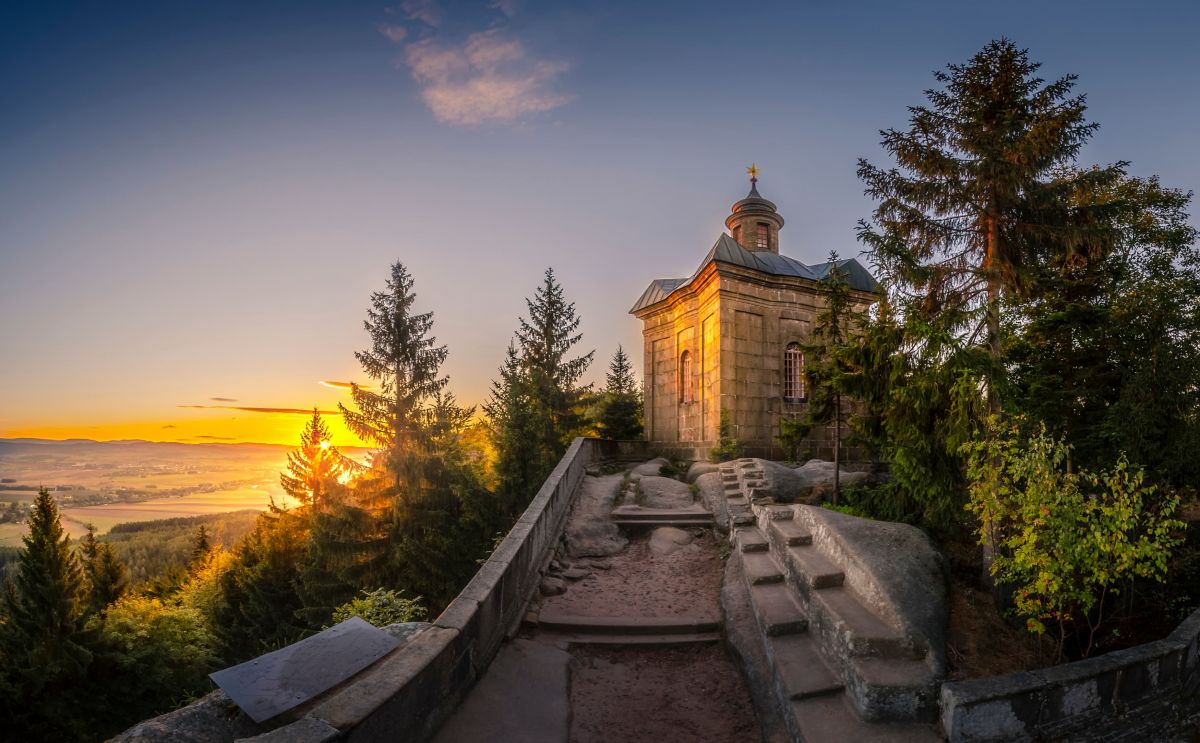 Hvězda je pravděpodobně nejnavštěvovanějším místem Broumovských stěn a zároveň důležitou křižovatkou turistických cest. Na samotném hřebenu byla v r. 1733 vystavěna barokní kamenná kaple Panny Marie Sněžné, dílo K. I. Dientzenhofera. Při pohledu na půdorys kaple zjistíme, že působí zdáním pěticípé hvězdy. Uvnitř je však kruhová, hvězdu vytváří z kruhu vyčnívajících pět cípů. Na vnitřní stěně kupolovité střechy je modře vymalovaný strop se zlatými hvězdami. Vnitřní vybavení pochází z druhé poloviny 19. století. Na kapli navazuje kamenný ochoz, ze kterého je pěkný pohled na Broumovskou kotlinu a okolní kopce a hory na severu: Góry Wałbrzyskie, Javoří hory, Góry Sowie. Na zábradlí ochozu je umístěna kovová deska, která usnadňuje orientaci při rozhledu do krajiny.