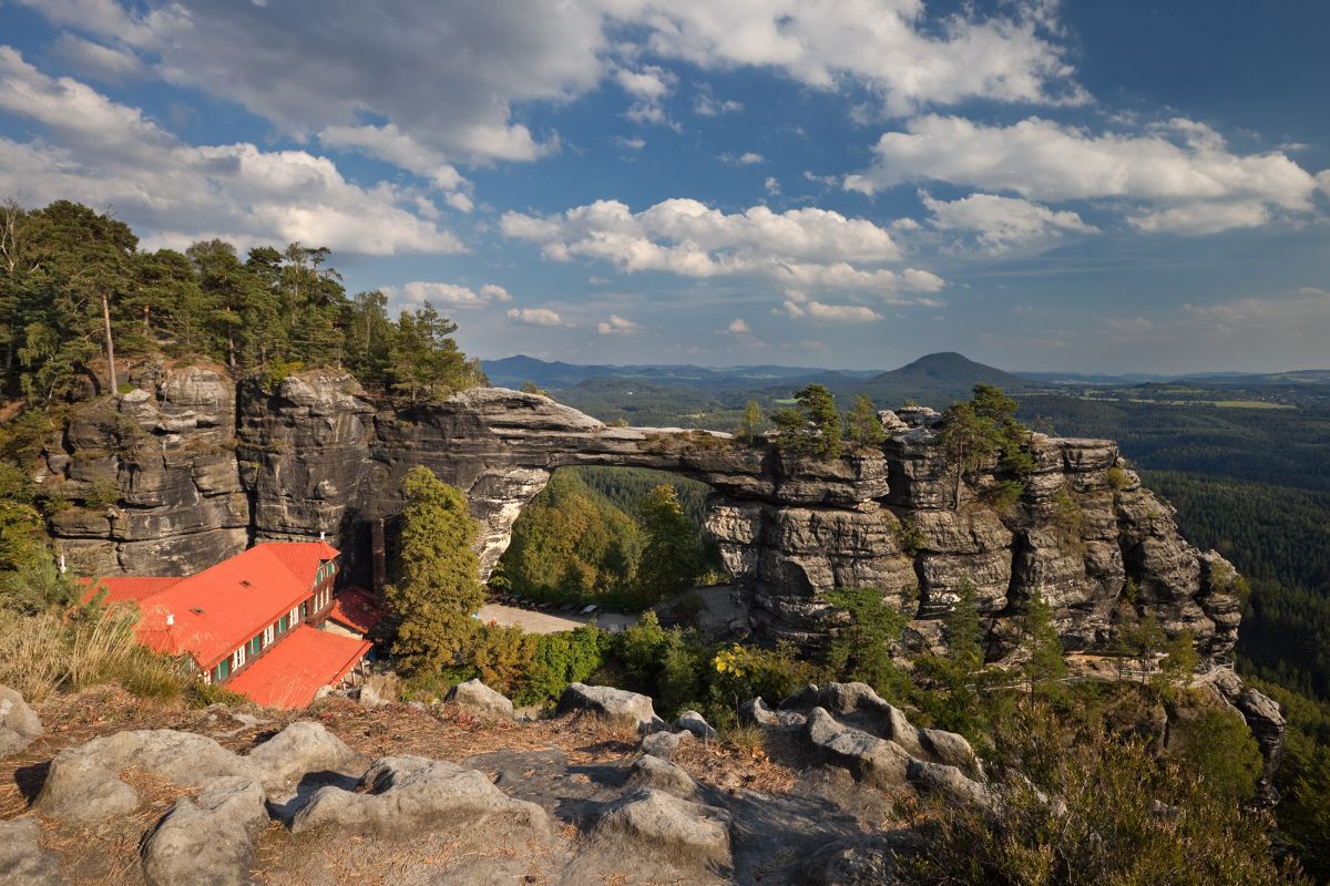 Pravčická brána leží na česko-německé hranici, asi 20 km severně od Děčína v nadmořské výšce 415 m n.m. Největší pískovcová skalní brána v Evropě má rozměry 26,5 metrů na šířku, 16 metrů na výšku a tloušťku 7-8 metrů a patří oprávněně k největším atraktivitám Českého Švýcarska. Vznikla bočním zvětráváním skalního ostrohu vybíhajícím z plošiny.