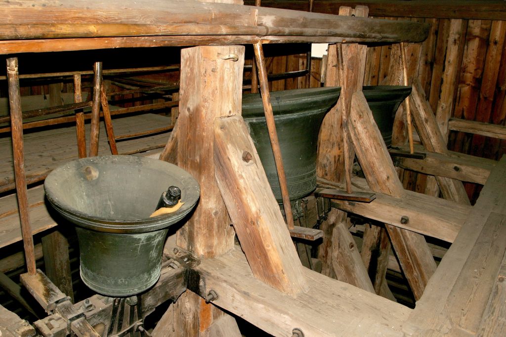 Dnešní zvonice je vybudována na osmibokém základě ze silných dřevěných trámů a prken a pod šindelovou střechou skrývá světovou zvláštnost – zvony, obrácené srdci vzhůru, jež se uvádějí v pohyb šlapáním.