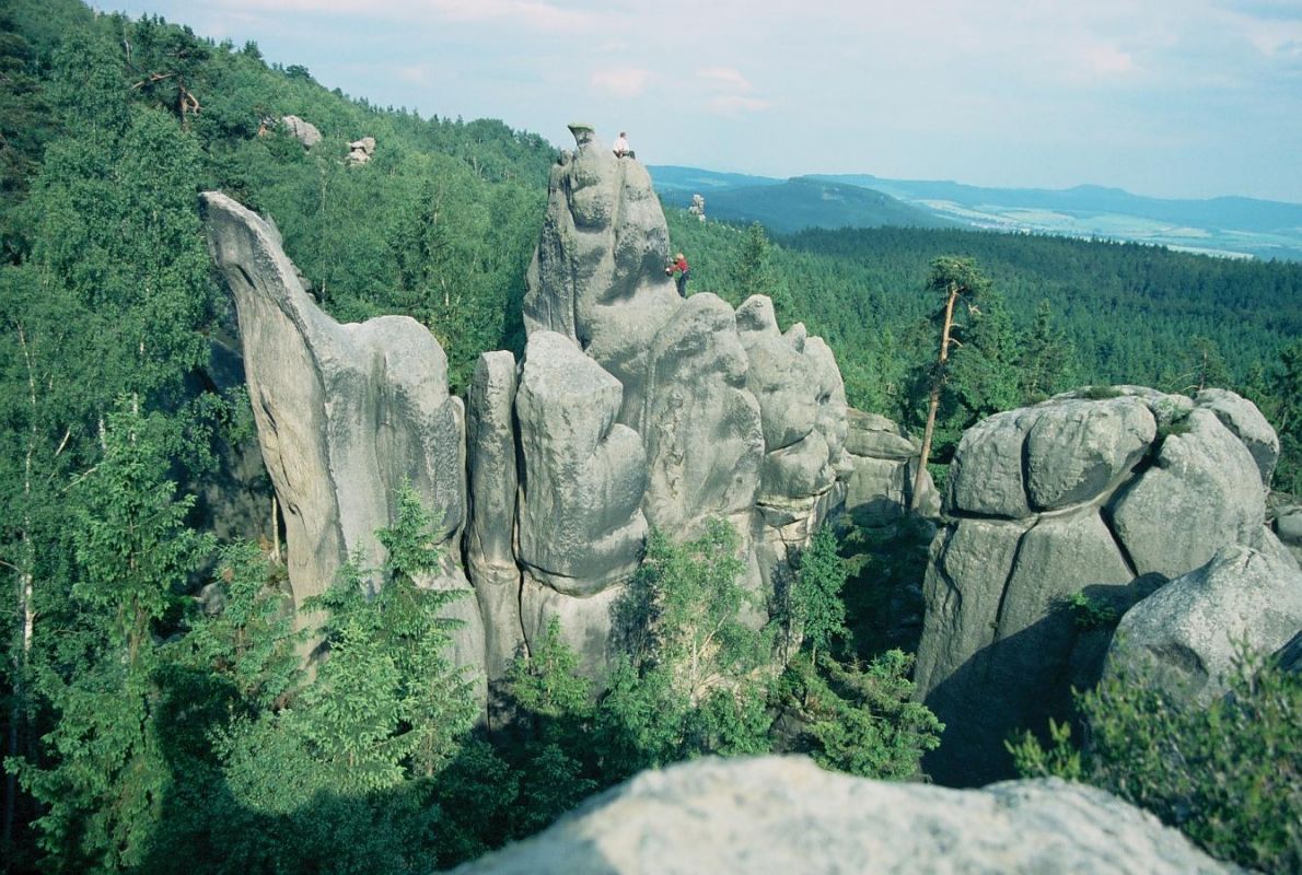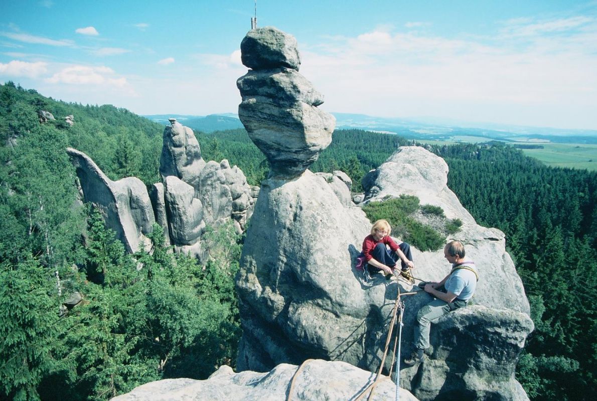 Součástí Teplických skal je i částečně oddělený skalnatý hřeben Supích skal. Na západě začíná vrchem Čáp, který je nejvyšším bodem Adršpašsko-teplických skal. Na jeho vrcholu (786 m n. m.), kam vede zelená turistická značka, stojí rozhledna s úžasným kruhovým výhledem. U rozhledny najdete první věže této lezecké oblasti. Další skály se tyčí východním směrem po celém hřebeni Supích skal a v jižních i severních úbočích zbrázděných krátkými a příkrými roklemi. První věž, Biskup, zde byla vylezena již v roce 1936 místními (teplickými) sudetskými lezci Dewernerem, Bockem a Bittnerem. Lezení zde převládá stěnové, v drtivé většině v pevné skále s častými železitými inkrustacemi. V posledním lezeckém průvodci (Nakladatelství JUKO, 2011) je zde popsáno 115 věží. Dalších 70 věží stojí v oblasti Nový svět, tedy v hlubokém kaňonu spojujícím Supí skály s Vstupní roklí Teplických skal.