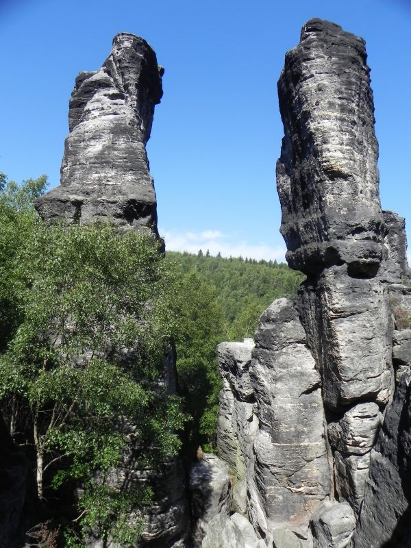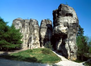 Z Tiských stěn lze dojít po značených cestách do oblasti Rájeckých a Ostrovských skal na hranici se Saskem. Na německé straně v údolí Bělé se nachází Herkulovy sloupy, jedny z nejlépe utvářených pískovcových věží skalních měst.